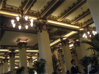 順便放上舒適的沙發跟很讚的電視櫃 在床上就把電視頭轉到床方向,在沙發上就把電視頭轉到沙發方向 天氣很舒適!甚至有點熱 飯店拍出去的景象 我們先去中環辦登機。 香港預辦登機真的超方便的 在市區就可以把大型行李直接托運,且有各家航空公司櫃台提供劃位服務 cathay排隊伍超長,不愧是香港的航空公司。 處理完行李後,我們就開始找尋鏞記之旅…。 又熱腳又殘存著前一天尚未復原的痛,一度要放棄 但好吃的料理讓人覺得一切都值得。 我們兩個人點了燒鵝、炒牛河、蔬菜肉片湯、揚州炒飯 看起來經驗老到的中年服務員說我們這樣太多 事實證明我們食量真的很大...........硬是要吃完給老先生刮目相看。 可惜後來我們想點西米露時老先生已經不在店裡了, 不然真想跟他點。(哪裡來的這麼不願服輸的兩個人) 東西真的好吃。 燒鵝香且多汁不老硬;牛河味濃而不膩;炒飯粒粒分明口感特好;肉片湯清且甘甜而不腥。 (↗食神看太多) 服務也不錯。最後吃完後點的甜點西米露也是極品。難得吃到好吃不噁心的西米露。 價格相對也不便宜。 這一趟香港行下來,我根本不知道香港物價到底如何(笑 因為吃住逛街都很奢侈。 接下來就是香港買東西了,我錢帶不多所以沒買什麼 香港的高樓大廈很漂亮。雖然腹地很小看起來有點擁擠。 值得一提的是香港有armani的複合式商店。 有化妝品、花店、巧克力店等等。 我只買的起巧克力(笑 在一堆高樓大廈裡還有ifc逛了一天 路上有外勞的超級大型封街聚會 累了就坐下休息吃東西,休息夠了就起來走走逛逛 腳很痛的兩人沒有什麼行動力(笑 最後去機場時因為前一天颱風的影響班機大亂 我們晚上11點多才做上飛機 回到台北都兩點多了…。 這次的旅程雖然短暫,但對香港的印象很好,再次感謝筱婷和筱婷爸!