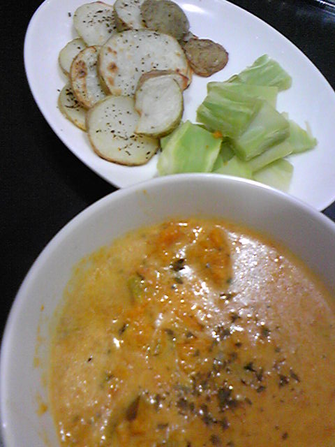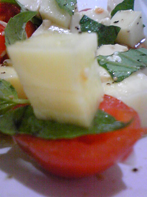 6:30離開公司, 目的地是天母SOGO, 隨口跟同事說可能會8:00才到家吧 沒想到, 我錯過了下車的地方, 居然一路坐到了公車的總站.... 潛入公車秘密基地的感覺還蠻好玩的, 司機很親切! 不過我真的8:10才到家 ![]() 昨天在MASA的blog看到一個看起來又簡單的食譜 cheese, 豆腐, 九層塔 & 番茄再加上調味料 很適合喝點小酒的感覺 ![]() ![]() 材料看起來很簡單, 做起來當然也非常簡單^^ 雖然照片沒食譜上面的美, 但這種白紅綠的配色真賞心悅目^^ 不到10分鐘就做好了連開伙都不用! 材料準備好, 淋上橄欖油, 醬油, 灑上適量黑胡椒&海鹽, 馬上就是好吃的一餐囉 ![]() 昨天做的料理...為了消化冰箱剩的南瓜, 花椰菜梗 & 馬鈴薯 隨便弄了南瓜湯(奶油, 南瓜, 牛奶) 烤馬鈴薯片 & 蒸花椰菜梗 澱粉好多的一餐 ![]() 新年快樂